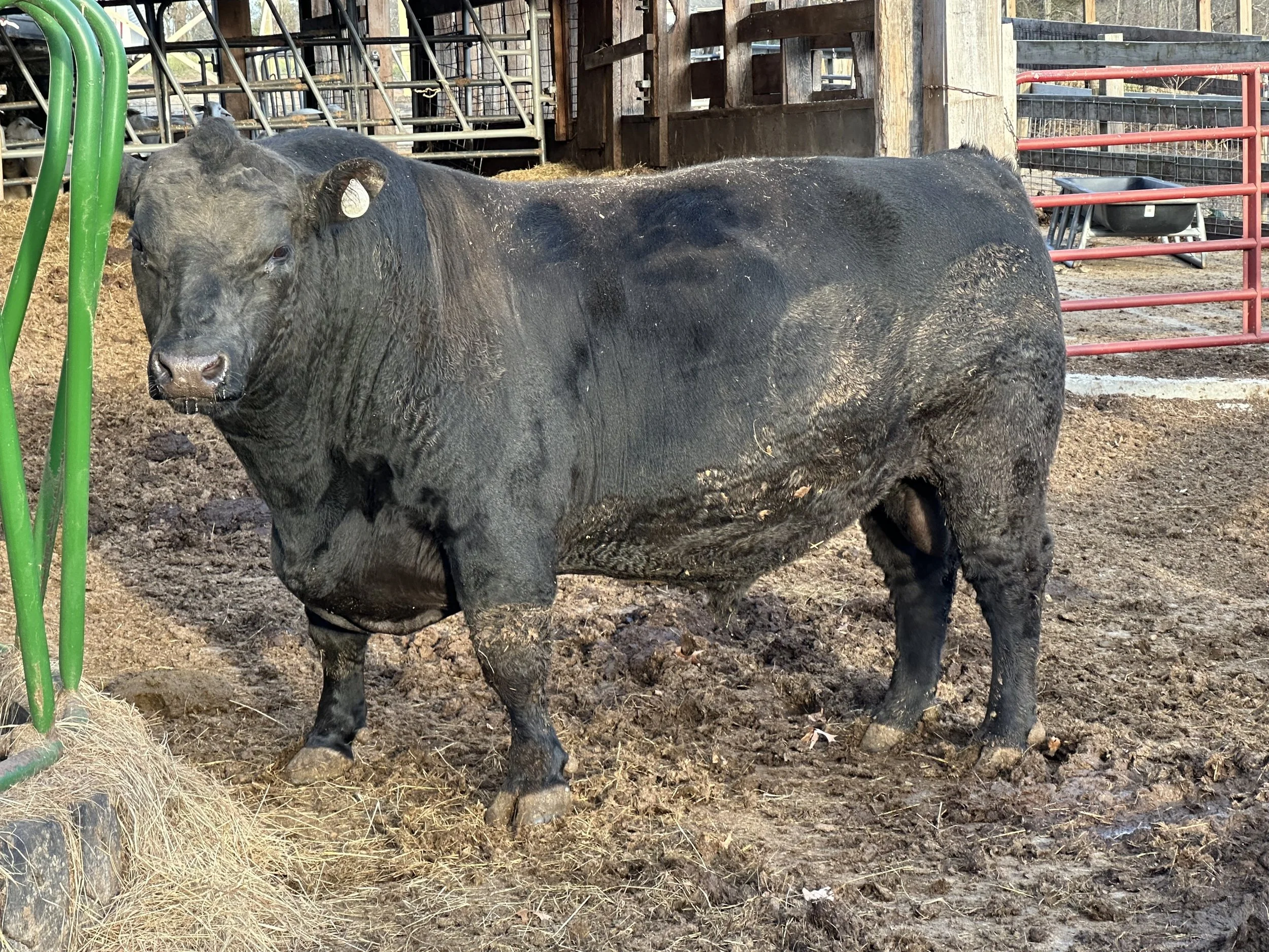 It is time to replace our herd bull. We have kept a number of his daughters as replacements. We purchased him from the WYE herd in Maryland in 2022. He is a moderate framed bull and incredibly easy fleshing on a diet of pasture/hay.